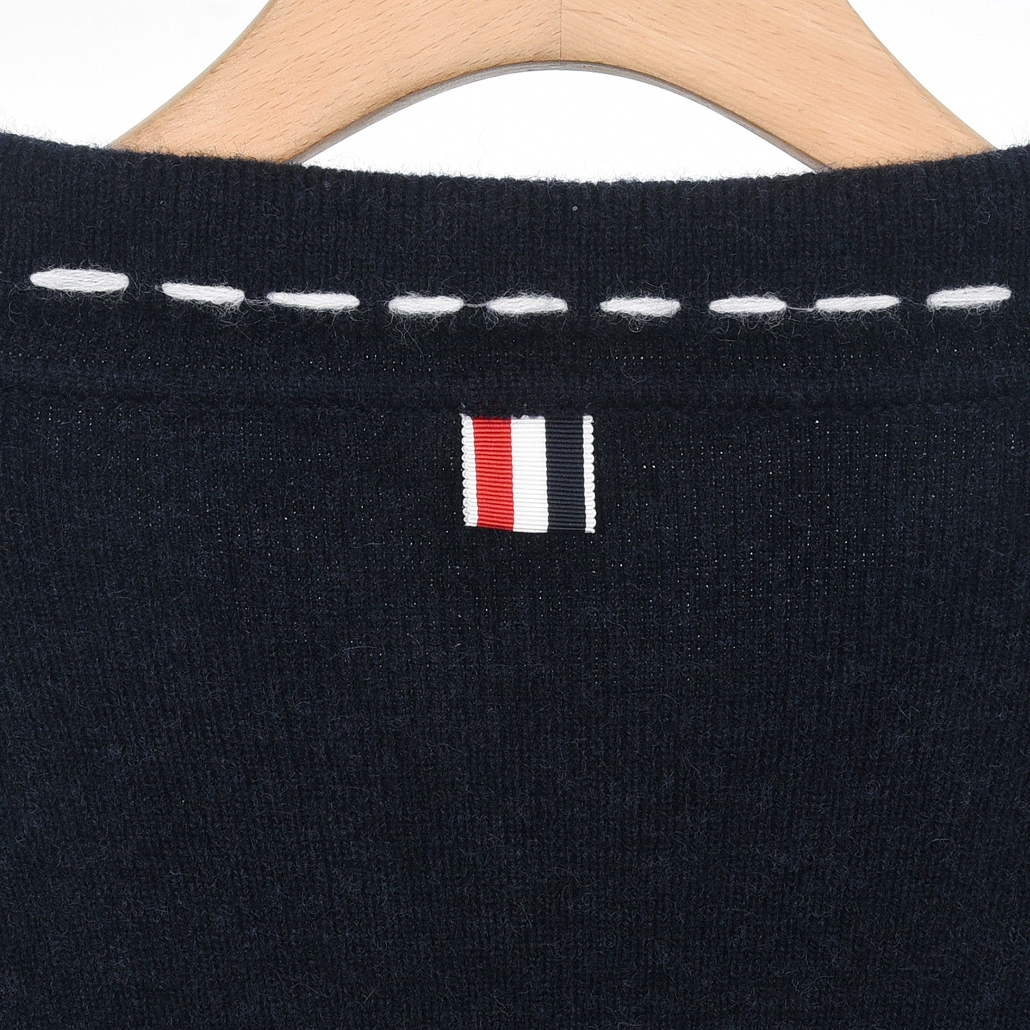 Signature striped grosgrain loop at back of neck