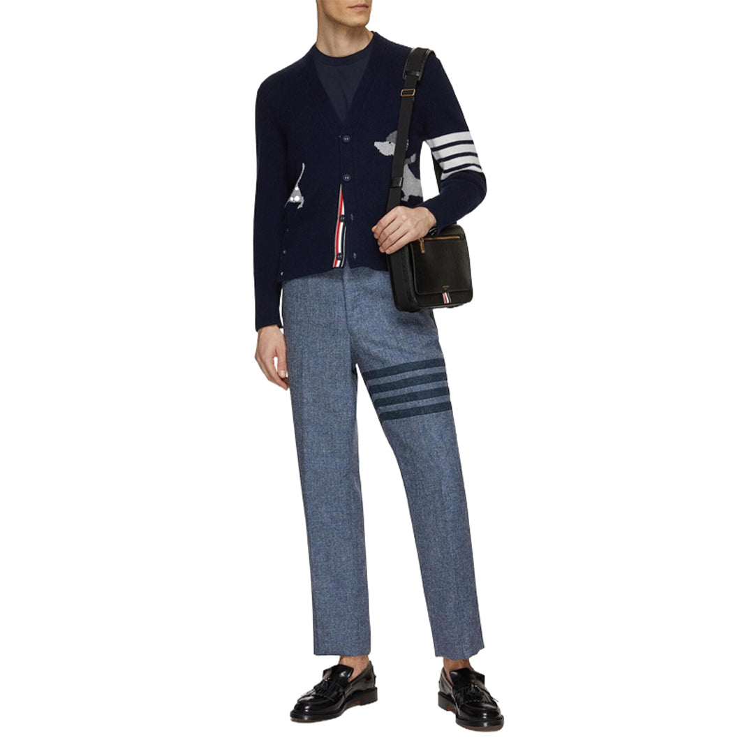 Signature striped grosgrain buckle at back neck