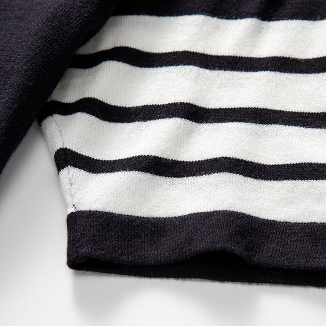 Signature striped grosgrain buckle at back neck